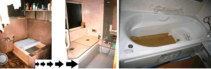 ●床も壁もタイル貼りで冬は寒くてつらい。 ⇒お風呂に入るまでが億劫。特に冬は洗い場にいるのがつらい。 ●おふろマットの汚れがいつもきになって(衛生面)毎日のお掃除がおっくう。 ●浴槽が小さいので足を伸ばして入れない ⇒ゆったりのんびり入りたい。