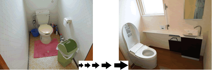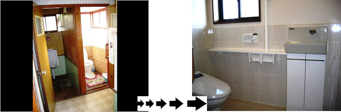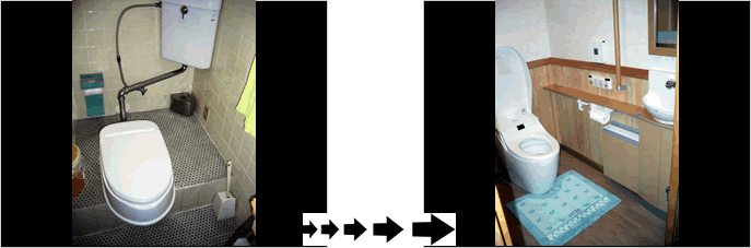 ●手摺りを取付し段差も解消して、高齢者にも快適優しいバリアフリーなレストルームに変身しました。